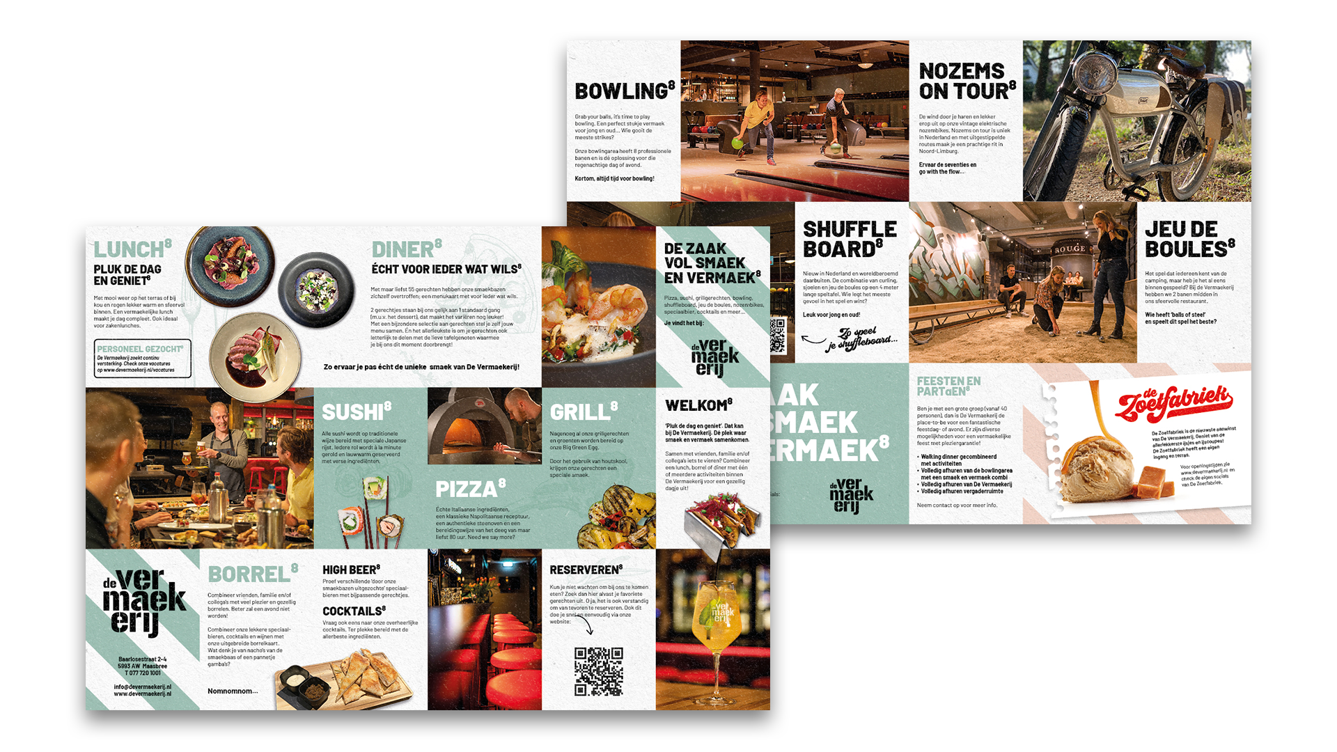 De Zoetfabriek is dé ijssallon in De Vermaekerij sinds de zomer 2022. Hierin hebben wij het concept vorm mogen geven op creatief gebied met daarbij de doorvertaling naar interieur en aanbod. Eindresultaat: Een unieke eigentijdse ijssalon. Een lust voor het oog en een ware toevoeging voor het Smaek & Vermaek aanbod van De Vermaekerij.